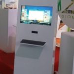 Borne tactile interactive a clavier sécurisé et souris Trackball, idéal pour mettre à disposition dans les services administratifs ce modèle est adapté aux solutions logicielles, avec d’impression disponible au sein de la borne.